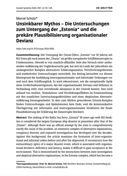 Schütz, M. (2024): Unsinkbarer Mythos – Die Untersuchungen zum Untergang der "Estonia" und die prekäre Plausibilisierung organisationaler Devianz. In: Soziale Systeme. Zeitschrift für soziologische Theorie 29(1/2). Themenheft "Die Rigidität des Unverbindlichen: Informalität und Interaktion in Organisationen", S. 92–128.