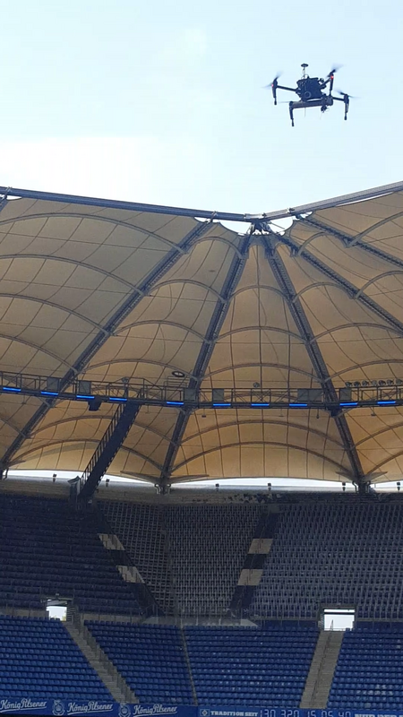 Am 15.08.2018 hat der Verband für Sicherheitstechnik e.V. Probanden zum Drohnendetektionstest eingeladen. Die Veranstaltung begann um 13 Uhr vor der Pressestelle am Volksparkstadion, wo wir direkt sehr nett und höflich empfangen worden sind und einen Tagesmitarbeiterausweis erhalten haben. Von dort aus ging es zunächst in den Pressekonferenzraum des HSV, der uns für die Veranstaltung bis 16 Uhr zur Verfügung stand. Als sich alle Teilnehmer dort versammelt haben, wurde uns das Forschungsprojekt genauer vorgestellt.
