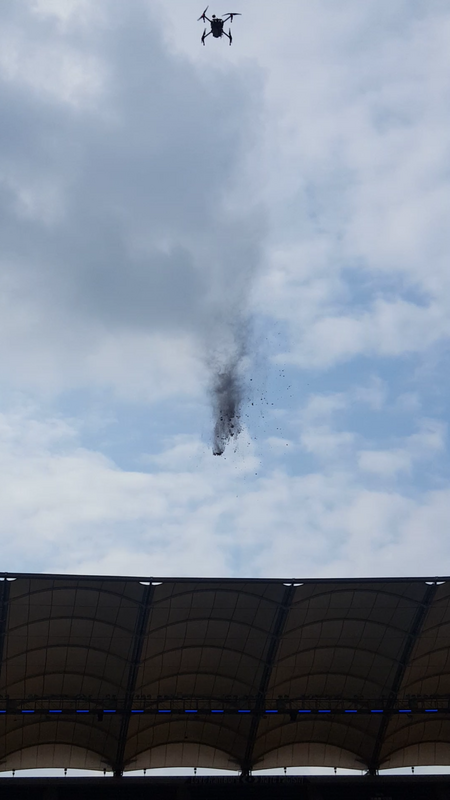 Die Drohnen kamen von außen ins Stadion hereingeflogen. Jede Drohne hatte etwas Einzigartiges. Einige wurden z. B. mit Gegenständen präpariert, welche dann Pulver abgeschossen haben, bei anderen wurde im Hintergrund Musik abgespielt, um zu demonstrieren, wie gefährlich solche Drohnen eigentlich sein können, da man sie schnell nicht mehr sehen konnte und sie durch die Geräuschkulisse erst sehr spät bemerkt wurden.