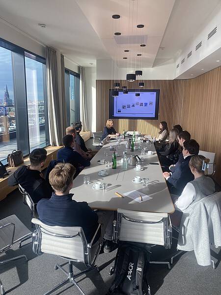 Am frühen Morgen ging es mit Prof. Dr. Maike Brammer und Studierenden aus dem Masterstudiengang (REM) zu CBRE in Hamburg, wo uns Dennis Kwast, Team Lead BI & Data Engineering, mit einem spannenden Vortrag begeisterte. Wir erhielten beeindruckende Einblicke in die Digitalisierungsstrategien und die praktische Umsetzung im Unternehmen.